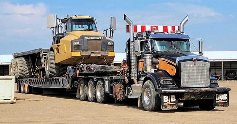 We not only supply our services to the oilfield, but have a lot of experience delivering equipment to Potash and Mining Sites. We take care of all permits and pilots as required. We have also been known to help a farmer out a time or two! Give Bruce a call @ 306-485-7535. Rates available upon request.